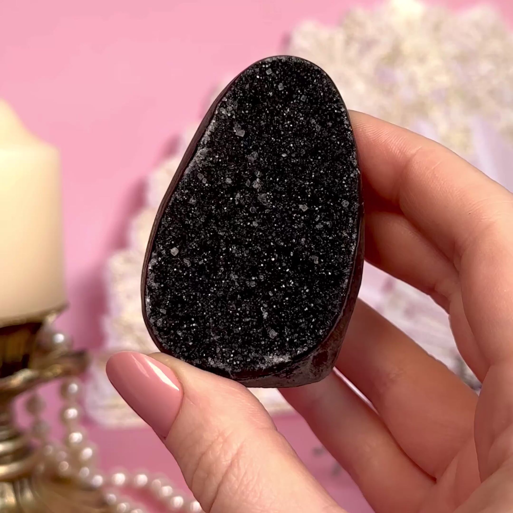 This listing is for one black amethyst geode, as pictured. Measurements can be found as follows: 59mm height, 125g weight.