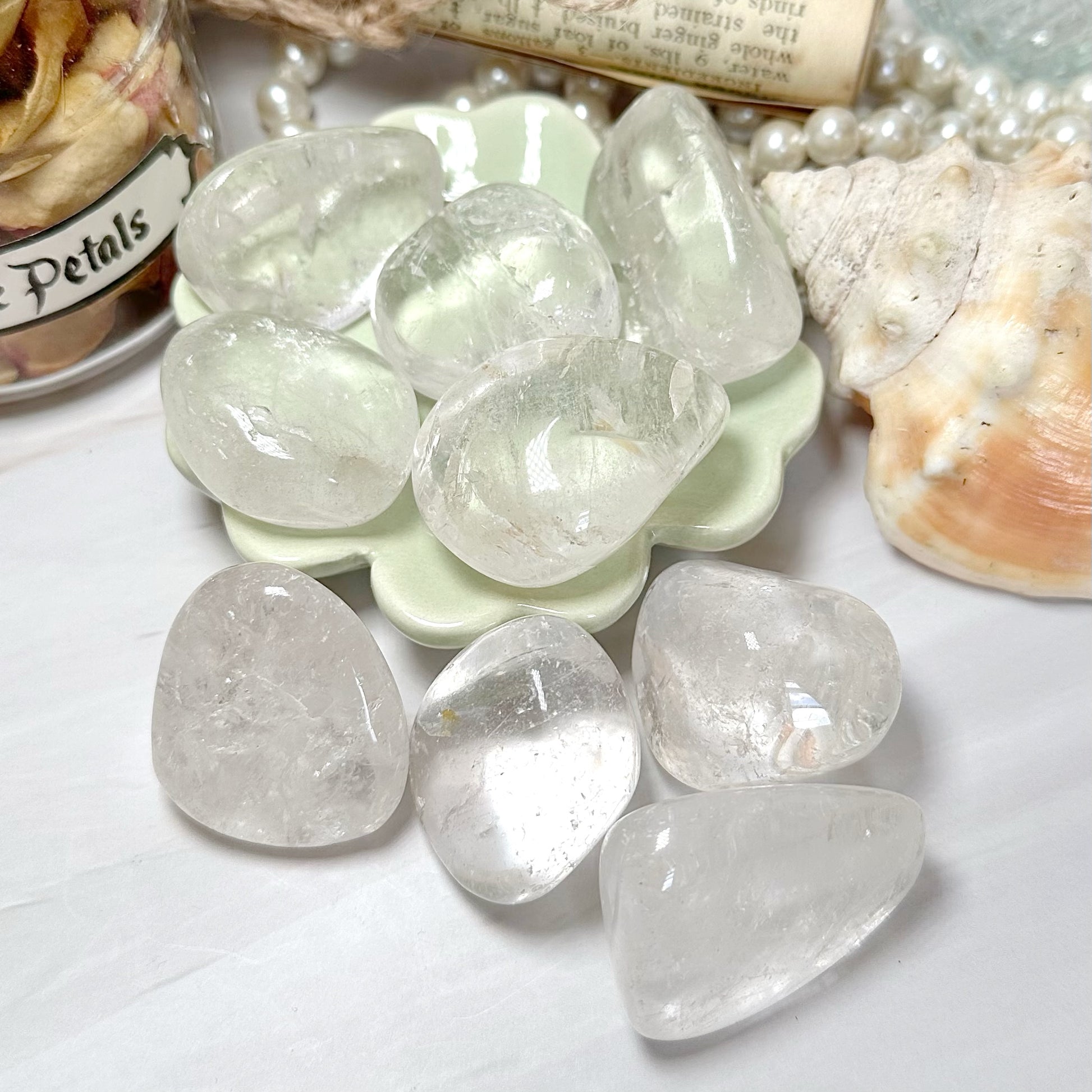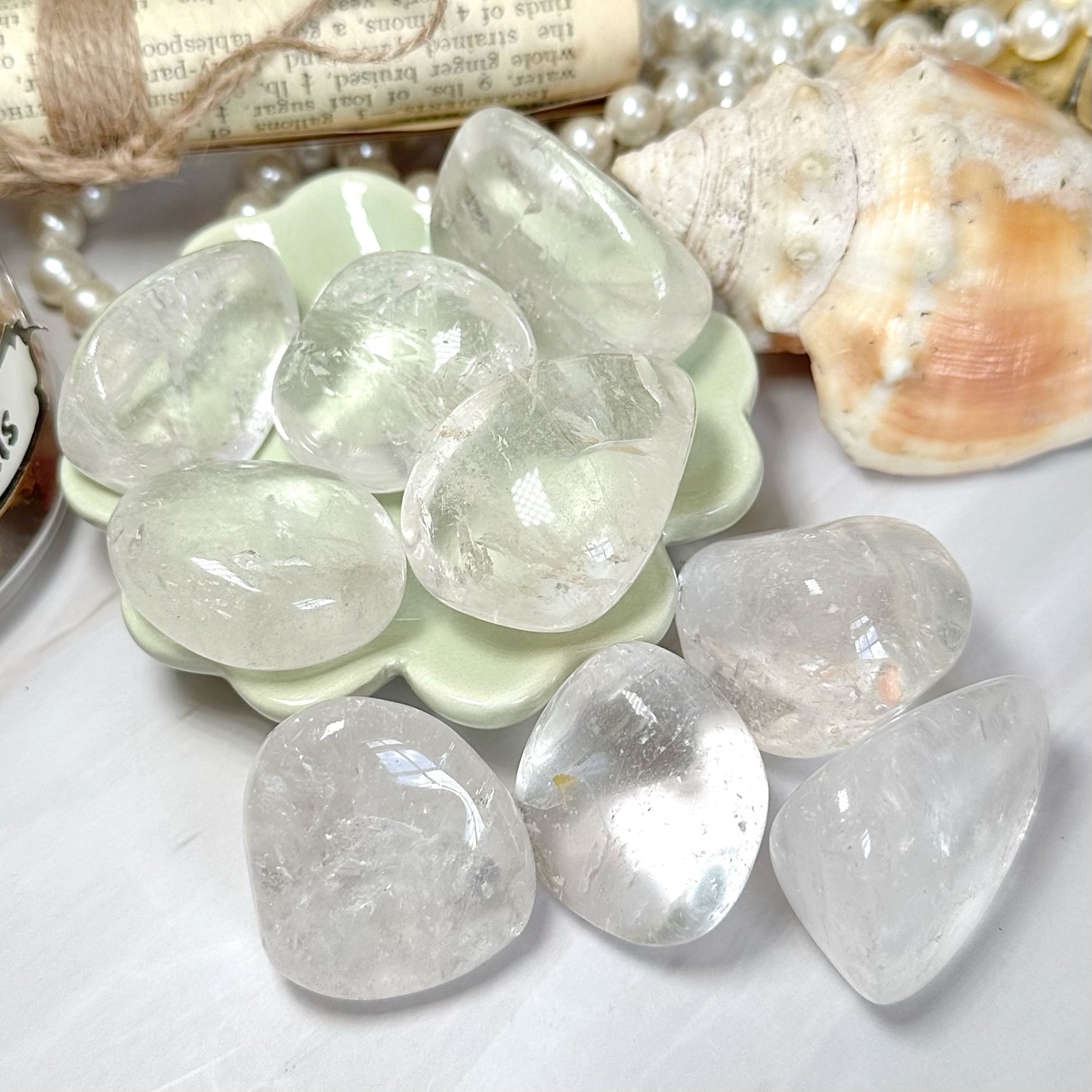 These beautiful clear quartz tumblestones are all unique, some contain rainbows and golden healer inclusions. Upon purchase your crystal will be intuitively selected just for you.