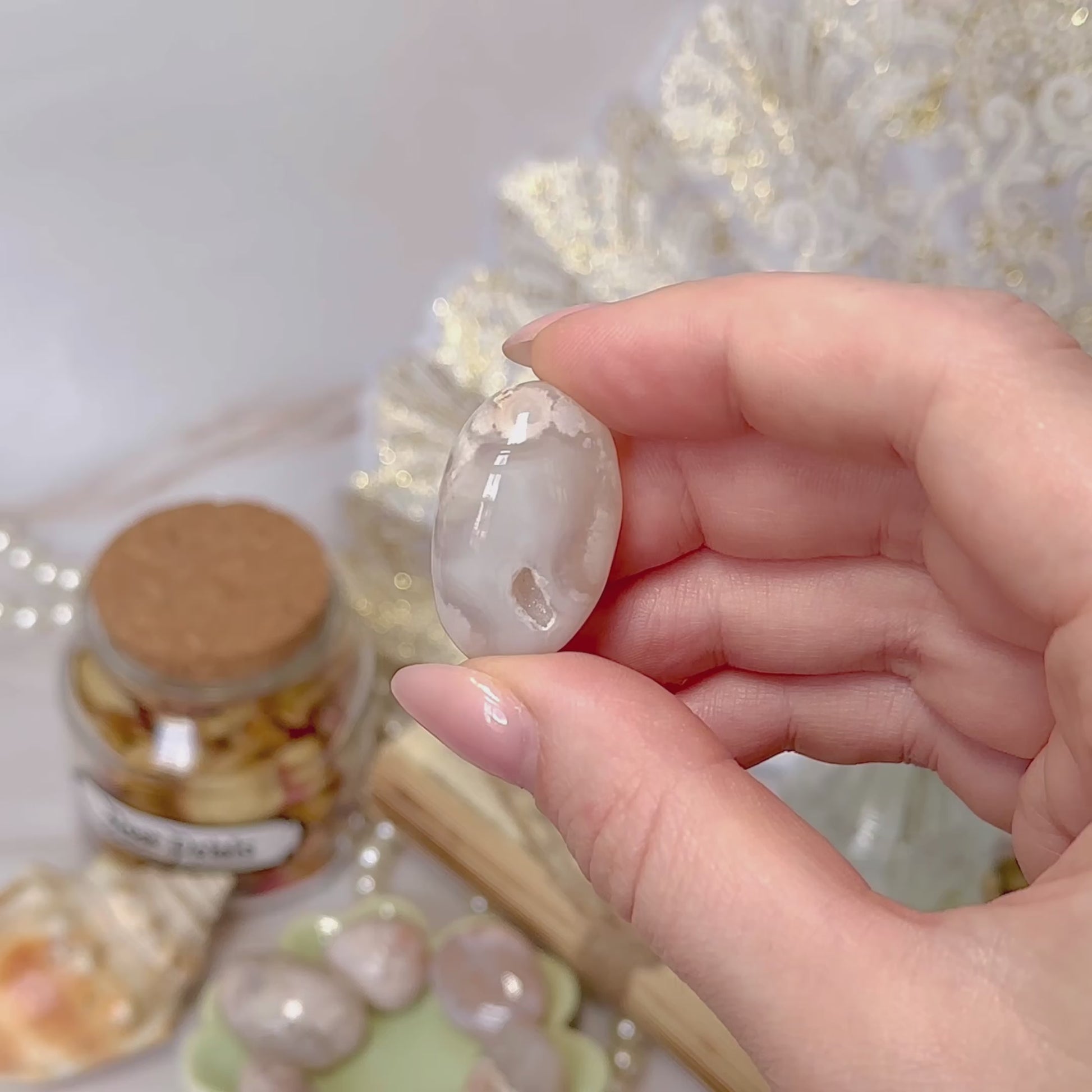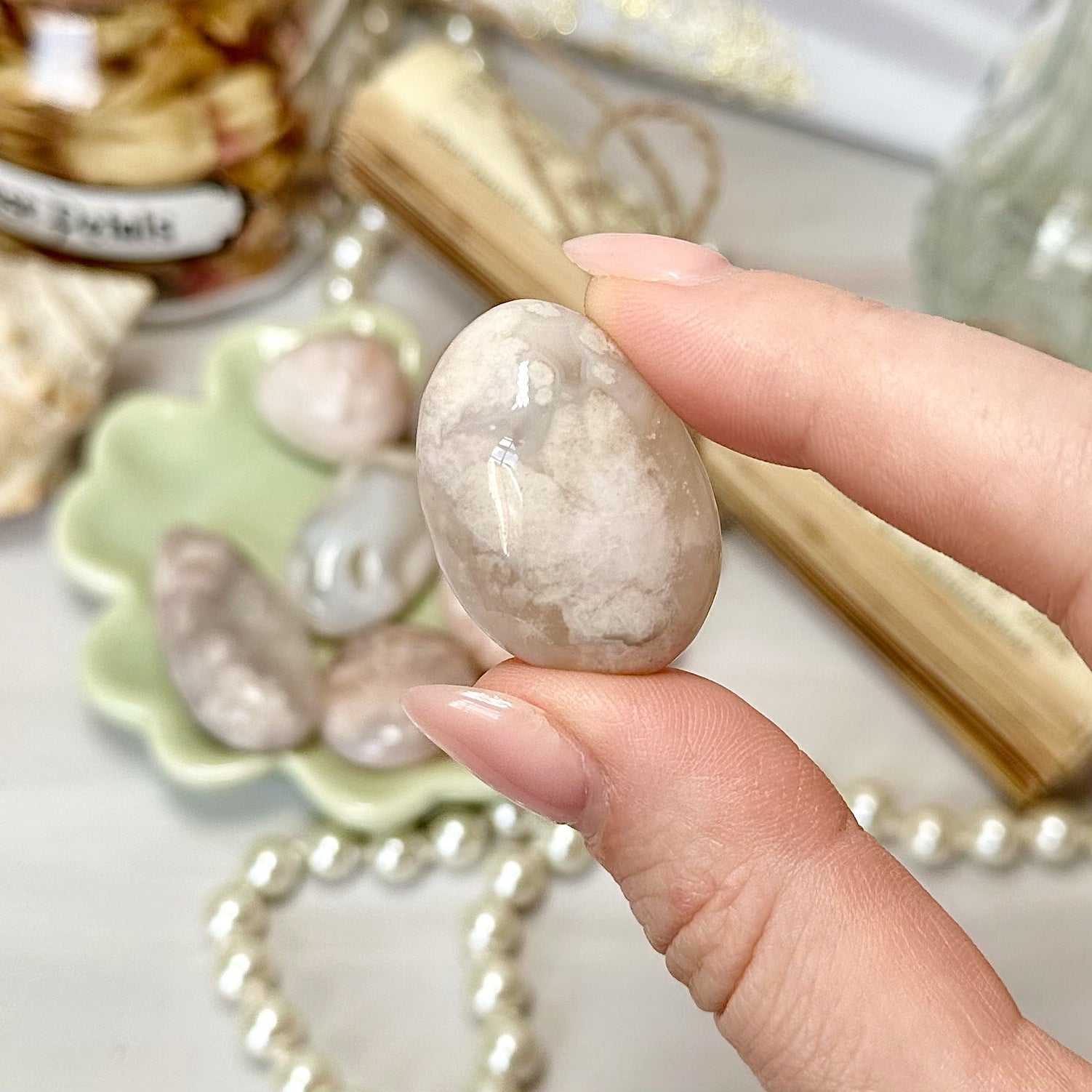 These lovely flower agate tumblestones are all unique, and upon purchase your crystal will be intuitively selected just for you.
