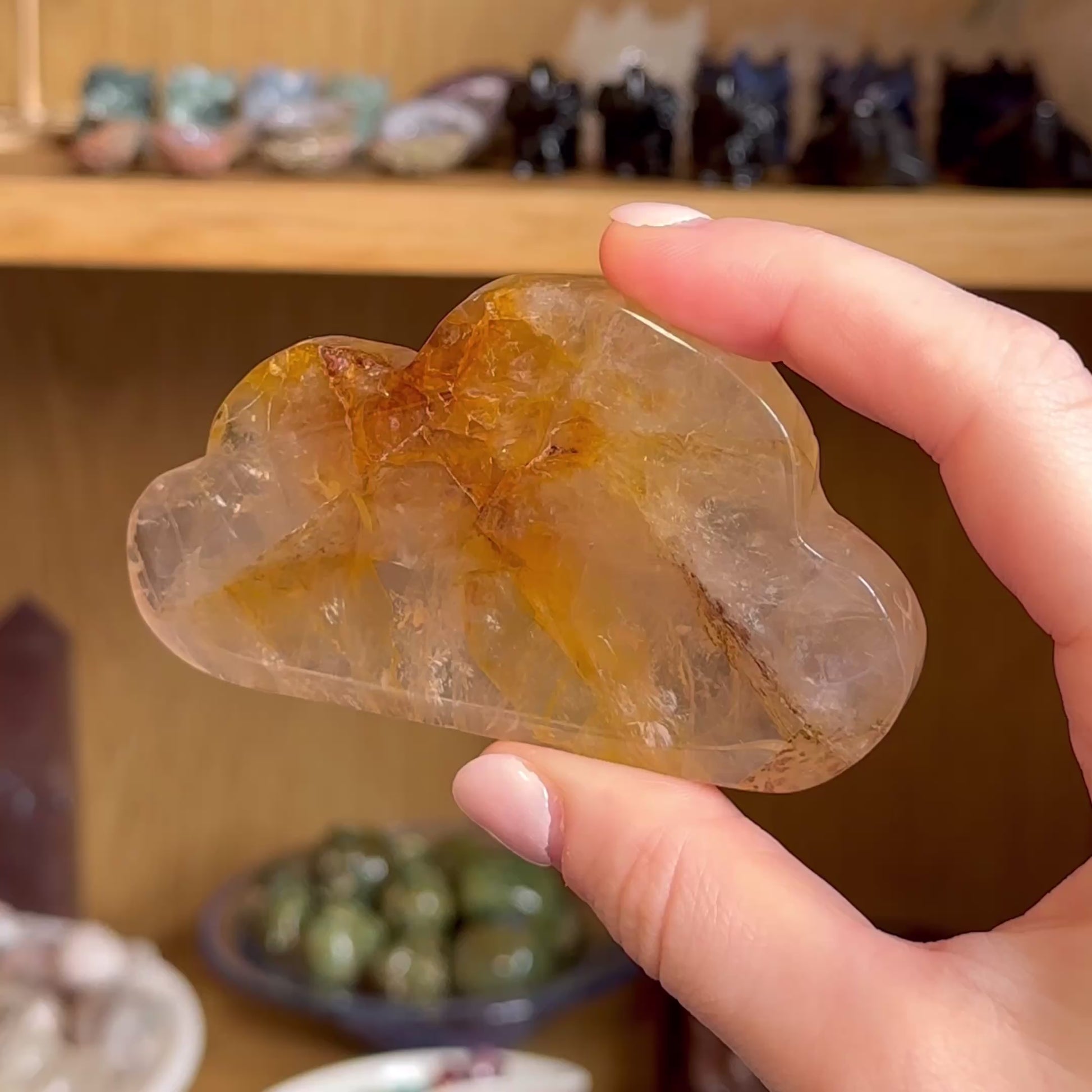 Golden healer quartz radiates warmth and restorative light, infusing your energy field with healing vibrations. This cloud carving captures the stone's luminous golden essence, creating a bridge between earthly and celestial realms.