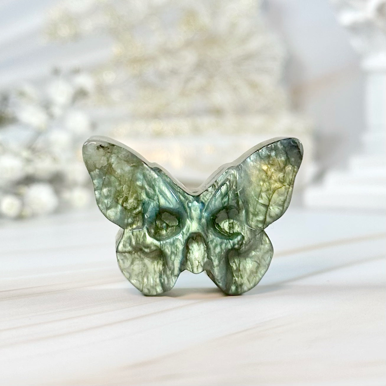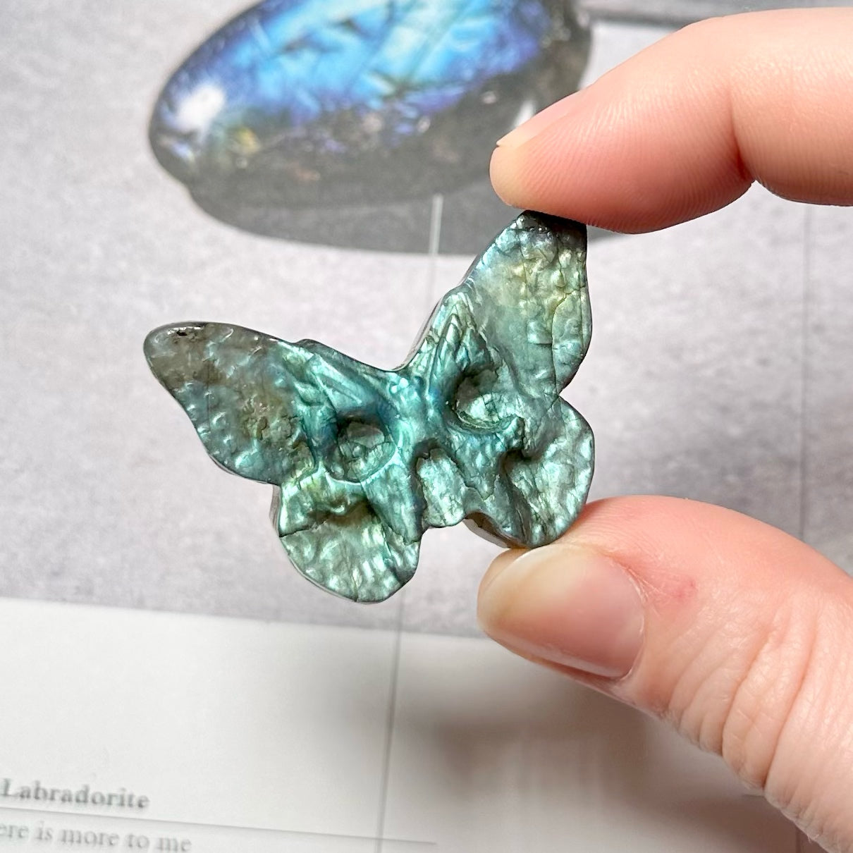 This listing is for one labradorite butterfly carving, as pictured. This crystal can stand freely and weighs 20g.