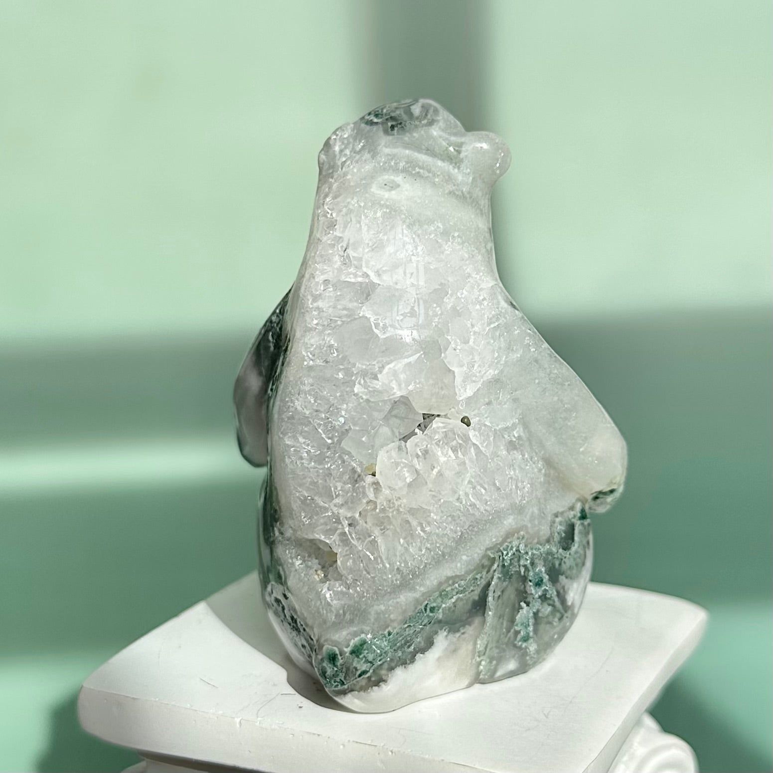 This listing is for one moss agate bear, as pictured. This piece measures 78mm in height and weighs 208g.