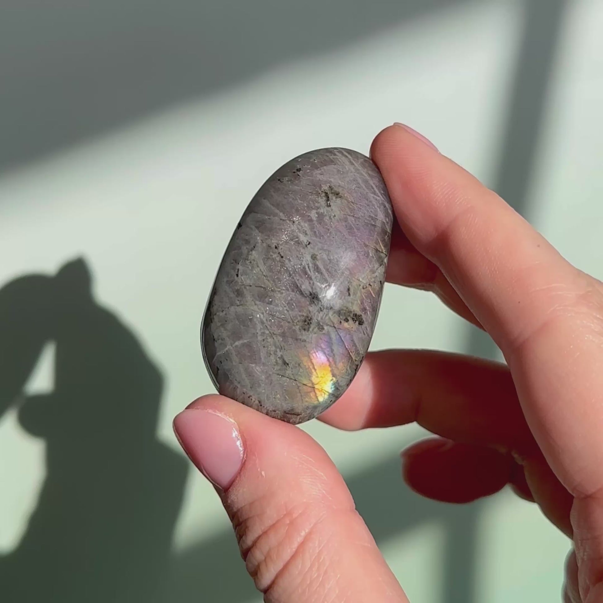 Labradorite carries a mysterious energy, enhancing creativity and also encouraging us to look inward. This stone of reflection reminds us of the beauty in every individual soul, and how multifaceted we truly are. This palm stone makes the perfect meditation companion!