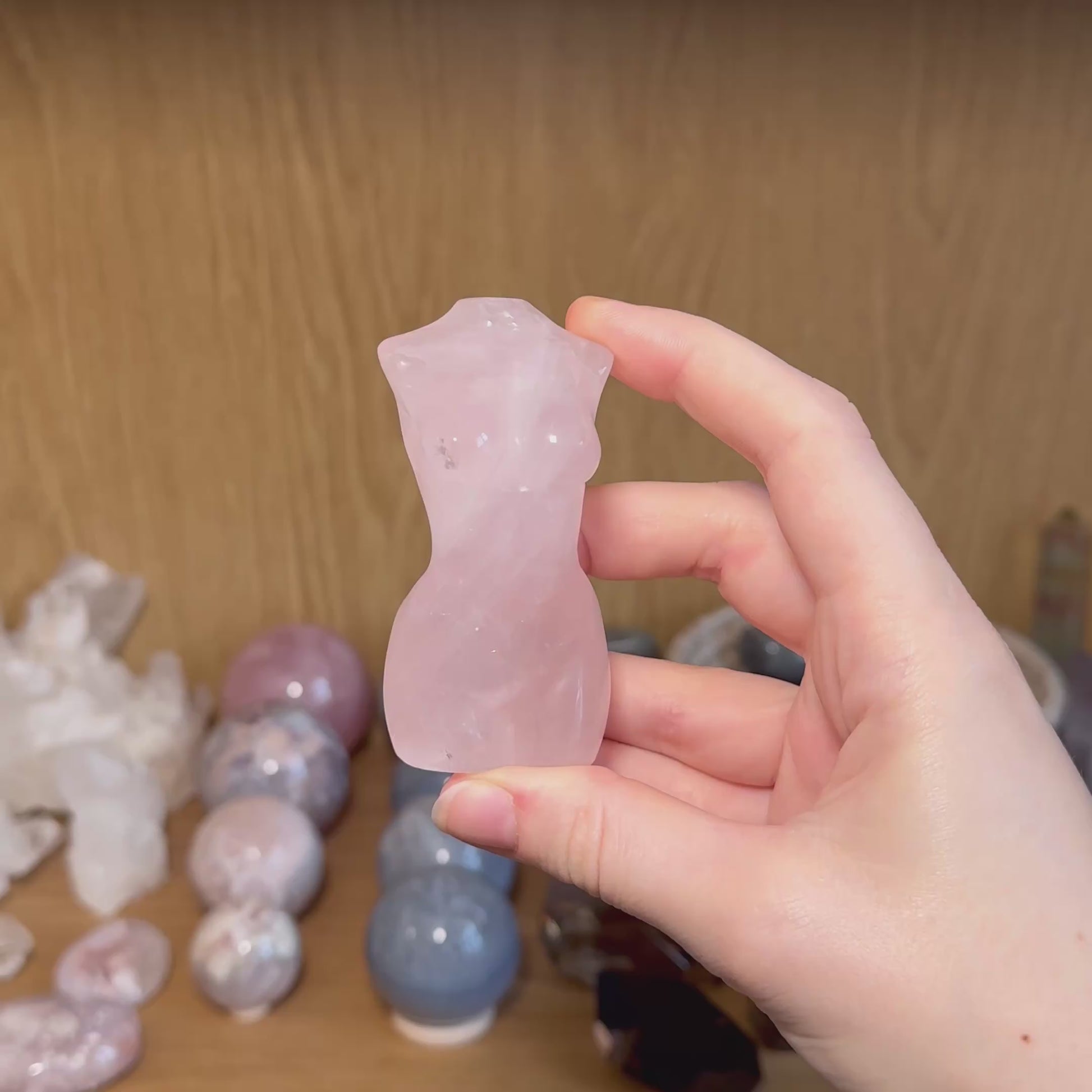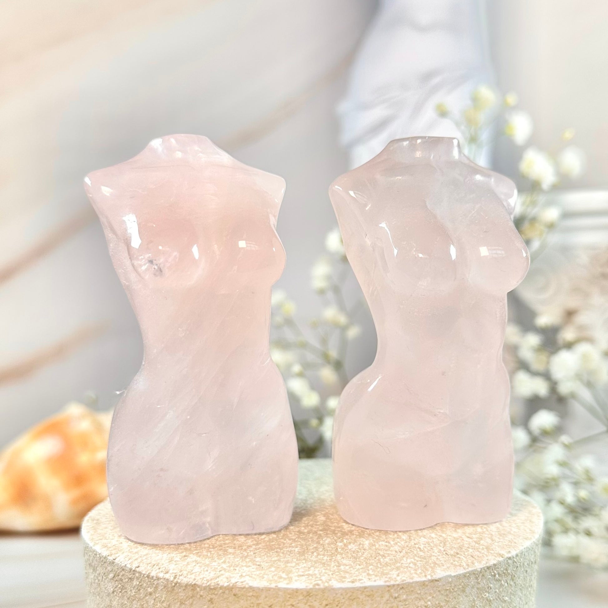 This listing is for two rose quartz goddess body carvings, as pictured. Upon purchase, your crystal will be intuitively selected just for you. Each piece measures 80mm in height and weighs approximately 140g.